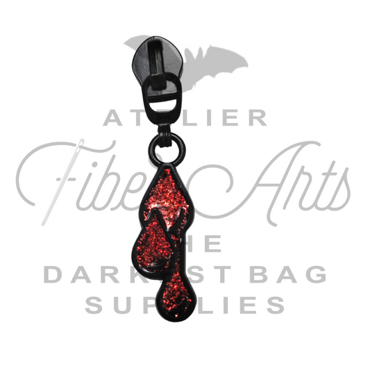 COMING SOON #5 Blood Droplets Single Zipper Pull in Matte Black and Enamel