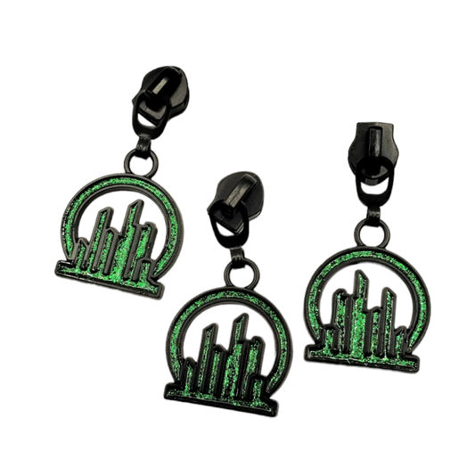 COMING SOON #5 Emerald City Zipper Pulls in Matte Black and Enamel