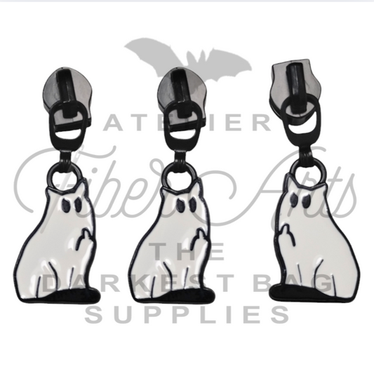 COMING SOON #5 Snarky Ghost Kitty Zipper Pulls in Matte Black and Enamel