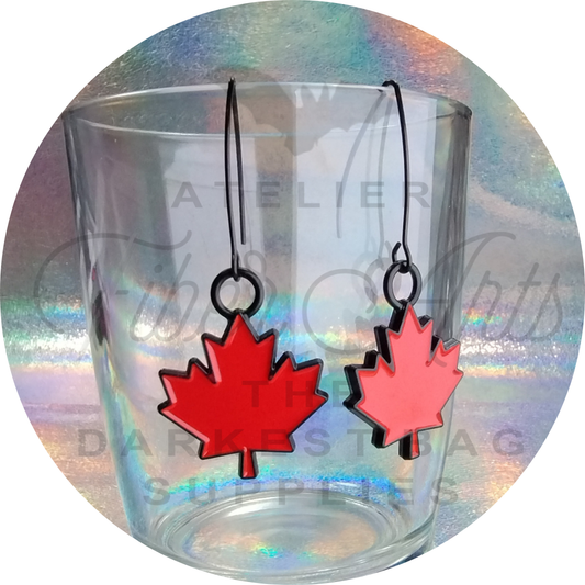 EARRINGS - RED MAPLE LEAF Enamel in Matte Black