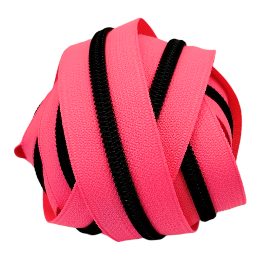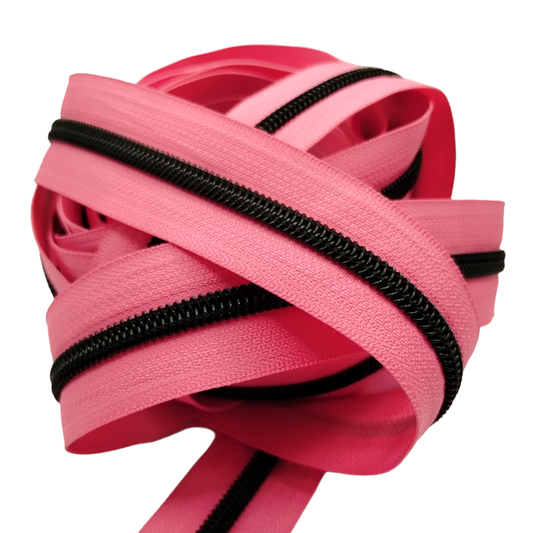 #5 Zipper - Candy Pink - by the meter - Black Teeth